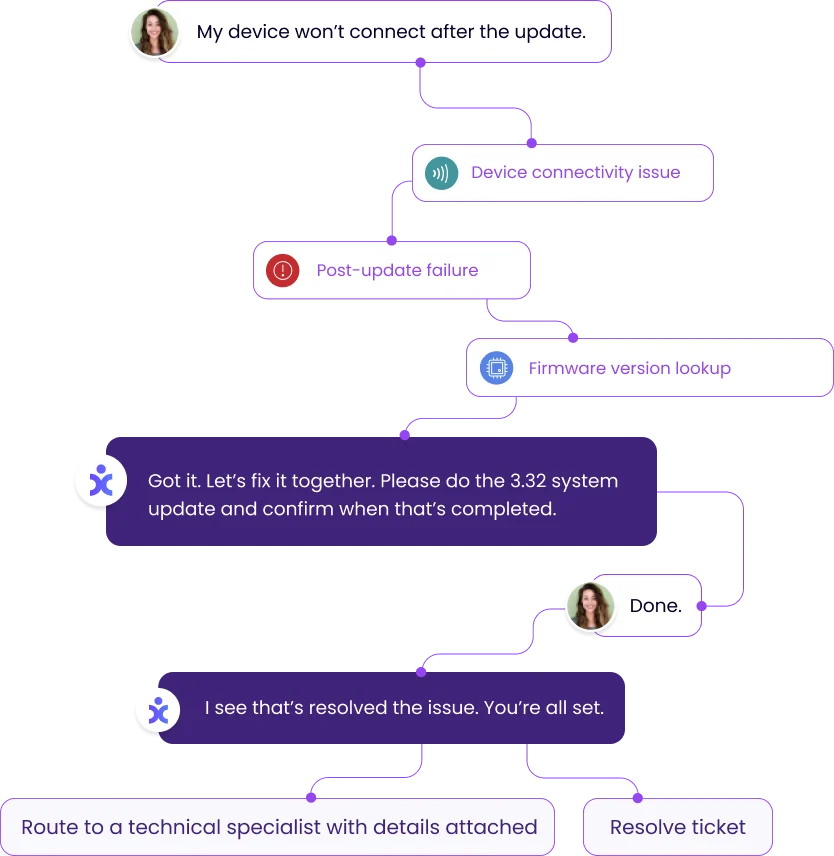 I deliver exactly that. I autonomously resolve requests end-to-end, seamlessly connecting with your enterprise systems to act in real-time.