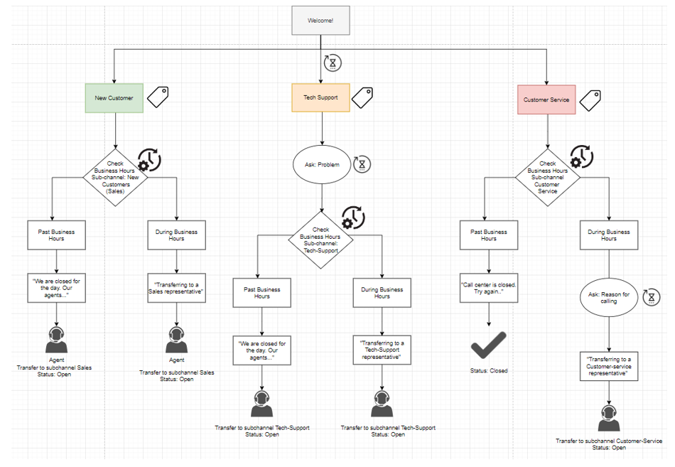 בוני בוטים, מנהלי אוטומציה ומפתחים יכולים להשתמש בתסריט השיחה שלנו כדי ליצור מערכת אוטומציה נרחבת שיכולה לשלב קריאות API, להוסיף פריטי מאגר ידע של בינה מלאכותית, לזהות כוונות ובקרוב מאוד גם לאפשר לנציג האוטונומי שלנו לטפל בכל האינטראקציות עם הלקוח. נושאים מתקדמים אלה מוסברים במדריכי אוטומציה נוספים.
